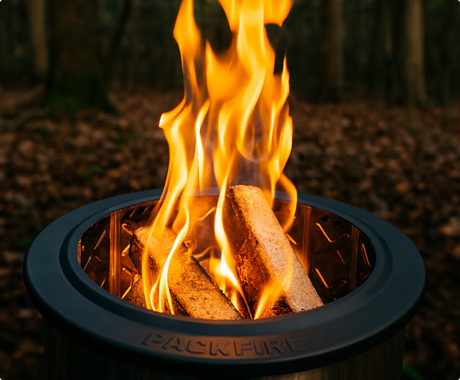 ClearBurn™ Firewood is built to go wherever the PACKFIRE fire pit goes. The compact, high-density bricks pack easily, just like PACKFIRE, which travels in its backpack. Paired with the fire pit's smokeless design, you get hotter, cleaner fires wherever you roam.